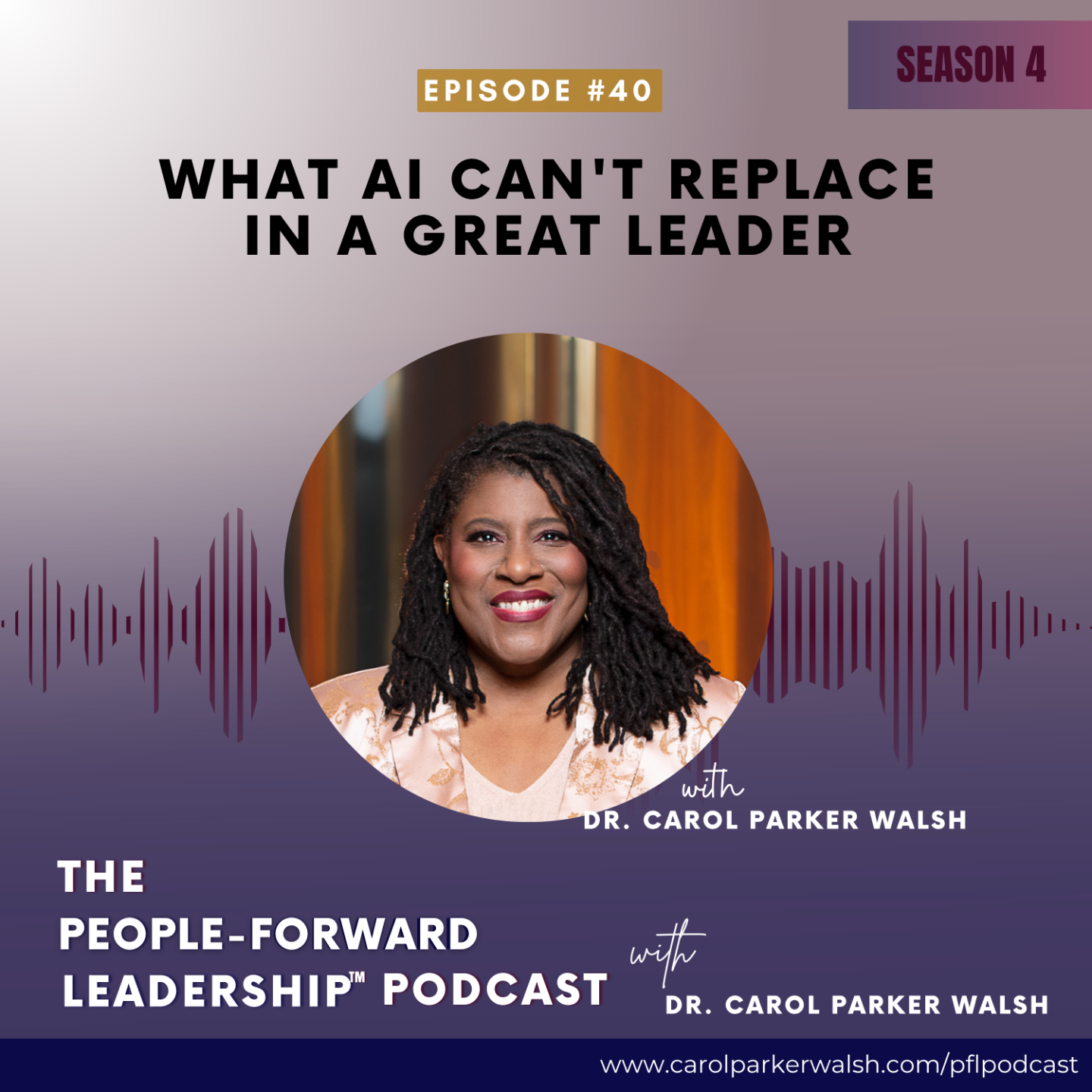 Ready to redefine what it means to lead in a modern, ever-evolving world? Each week, Dr. Carol Parker Walsh explores the transformative power of People-Forward Leadership™, blending expert insights and actionable strategies with candid conversations. You’ll gain the practical tools to cultivate thriving, people-centered teams. Whether you’re a rising leader navigating new responsibilities or a seasoned executive adapting to a digital and generationally diverse landscape, PFL provides the perspective you need to address today’s challenges while positioning your organization—and its people—for tomorrow’s opportunities. Tune in to discover how you can elevate your leadership impact, retain your top talent, and create engaging cultures—starting today.